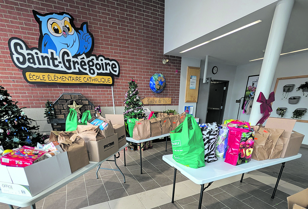 Les élèves de 4e, 5e et 6e année de l’École élémentaire catholique Saint-Grégoire (ÉÉC Saint-Grégoire) et de l’École élémentaire catholique Curé-Labrosse (ÉÉC Curé-Labrosse) se sont réunis dans le cadre d’une remise de denrées au profit de la Banque alimentaire de Vankleek Hill.